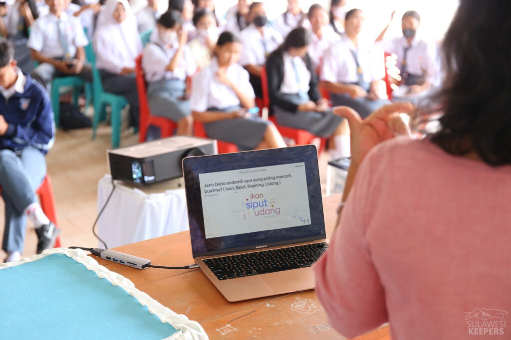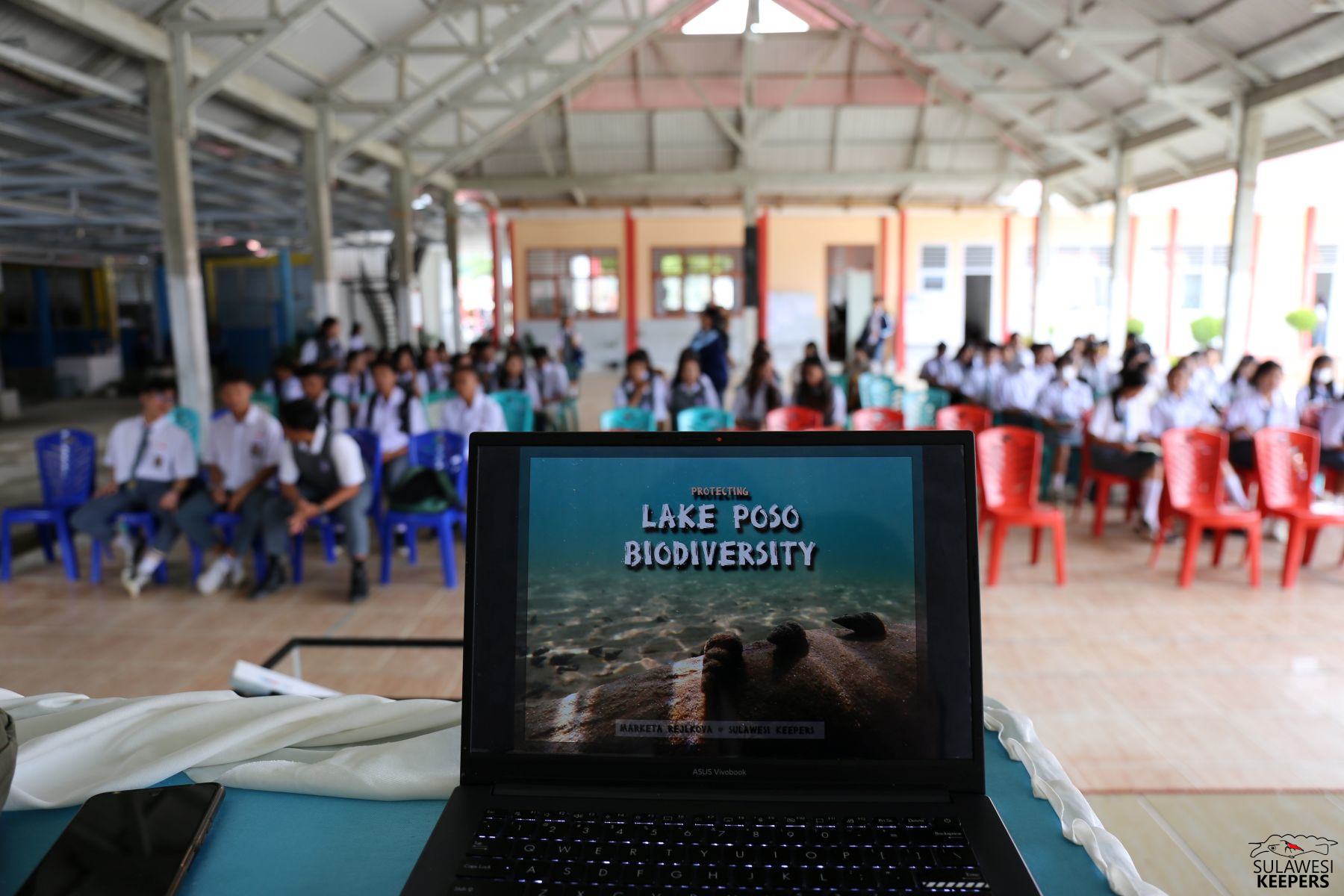 After a very dignified and accommodating welcome of the participants by the management of both schools, I started the presentation of the biodiversity of Lake Poso. With the help of many photos of animals and the beautiful underwater environment, which are not usually known to people living around the lake, I managed to captivate the audience. The second presentation was given by our friend Eko (Kurniawan P. Bandjolu) from Institut Mosintuwu. He showed endemic animals and plants found in the immediate vicinity of the lake. At the same time, he inspired the students to dedicate themselves to exploring the local biodiversity, because they can become great discoverers and at the same time ambassadors and protectors of the lake.