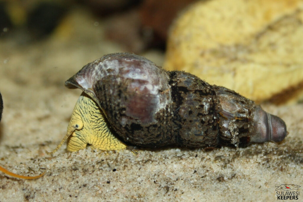 We weten niet genoeg! De meest verkochte soort is de zogenaamde Tylomelania sp. “Orange”, in de classificatie volgens Sulawesi Keepers (zie hier) heeft hij een meer nauwkeurige aanduiding Tylomelania sp. “Poso 1 – Orange”. Dit geeft duidelijk aan dat hij afkomstig is uit het Poso-meer, maar hij leeft daar op grotere diepte (naar verluidt onder de vijftien meter). Hij wordt gevangen met vallen. Het is een soort die nog niet wetenschappelijk is beschreven, waarvoor helaas geen foto’s of waarnemingen in het wild beschikbaar zijn. We zullen zien of er binnenkort een beschrijving of publicatie met meer informatie verschijnt.